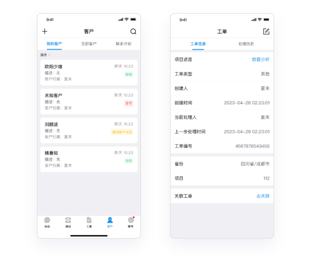 通过移动端APP实时接收客户咨询、处理工单、查看报表