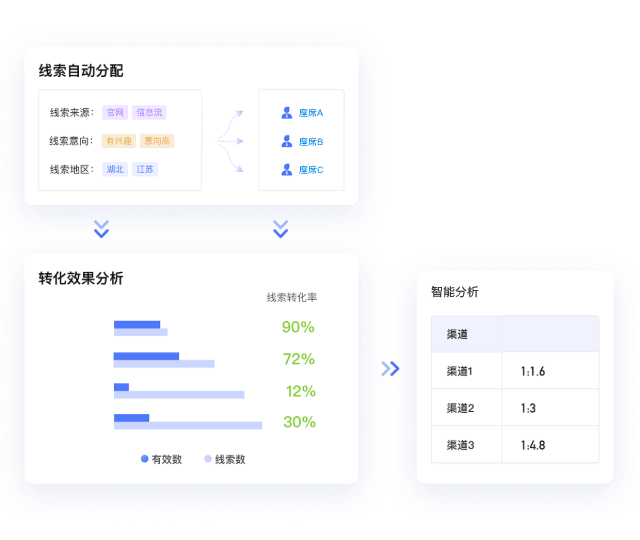 基于规则或算法,自定义分配规则,线索智能匹配销售,提升转化效率