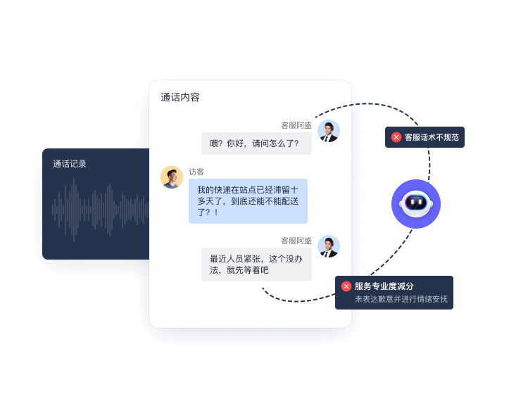 基于话术规范性、服务态度、问题解决率等多维度,自动生成服务质量评分